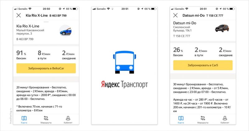 В приложении начала отображаться подробная тарифная сетка для автомобилей каршеринга.