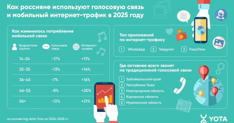 Так, за год средний голосовой трафик на абонента снизился на 12%, а мобильная передача данных выросла на 15%