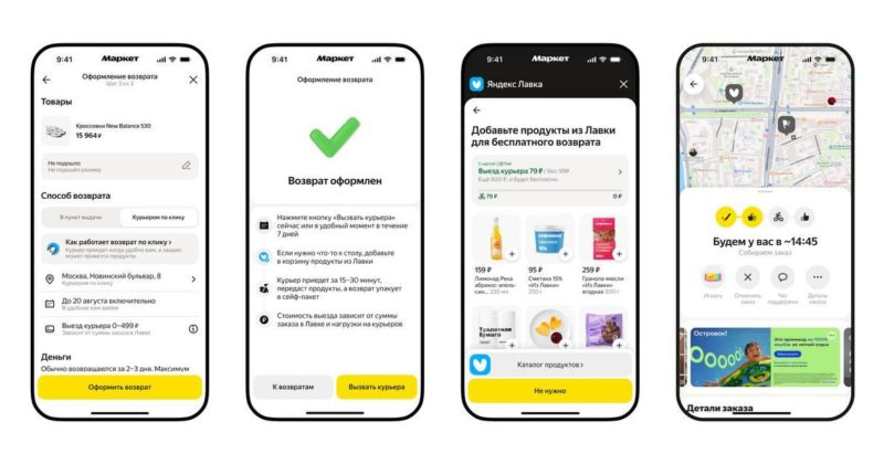 Курьер из Яндекс Лавки привезёт продукты и сразу заберёт товар для возврата