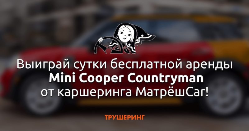 Трушеринг при поддержке оператора МатрёшCar разыгрывает бесплатную суточную аренду Mini Cooper Countryman среди всех пользователей Матрёшек. Объясняем механику розыгрыша, правила и условия.