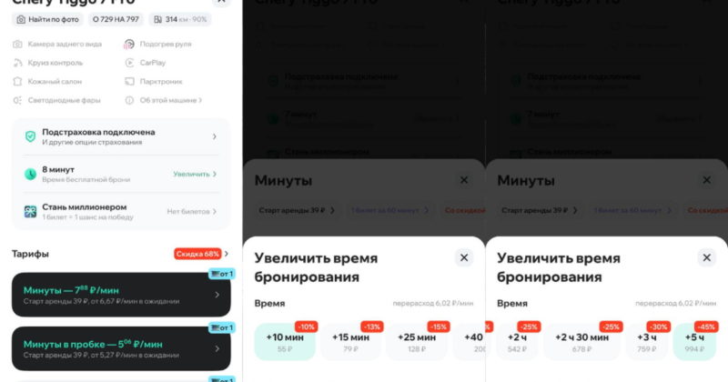 Машину можно забронировать в любое время суток до 10 часов ночью