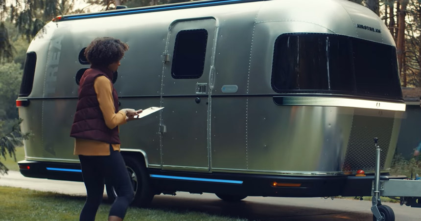 Используя приложение, разработанное Airstream, электродвигатели могут перемещать трейлер самостоятельно, совершая парковку прицепа отдельно от авто.