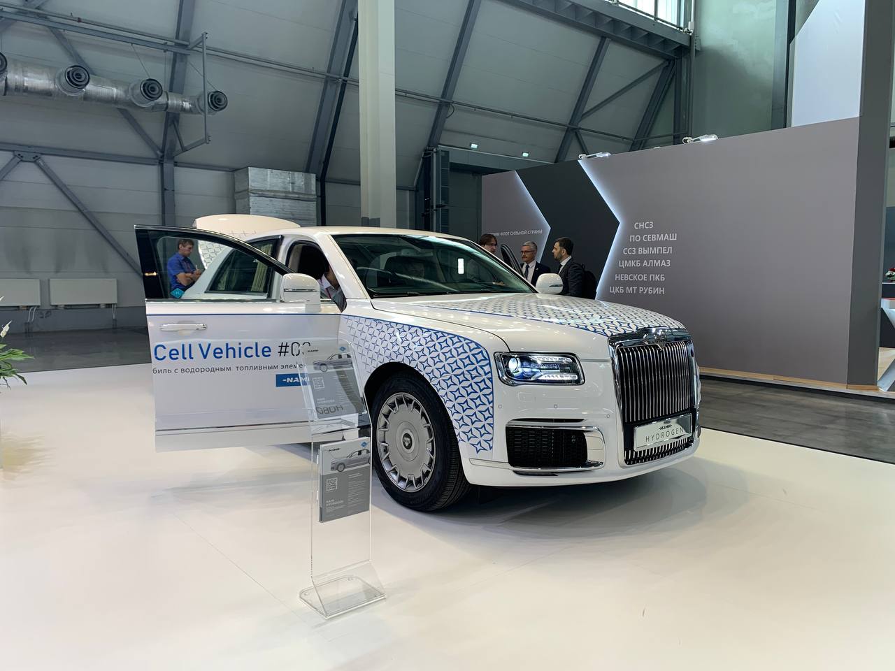 Российский научный и инжиниринговый центр транспортной индустрии ФГУП «НАМИ» представил на выставке «Иннопром» водородную версию автомобиля Aurus с низким углеродным следом.