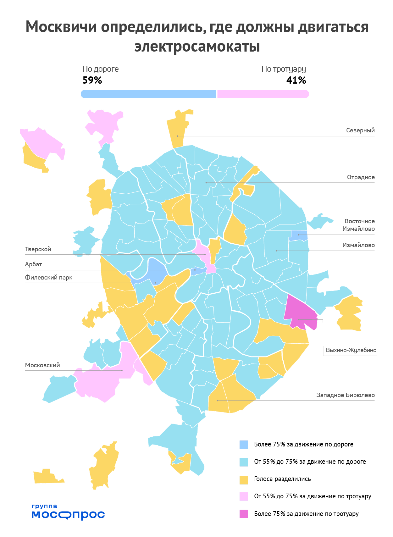 Группа Моспорос опросила москвичей в группах Вконтакте, где должны ездить электросамокаты: по тротуарам или дорогам.