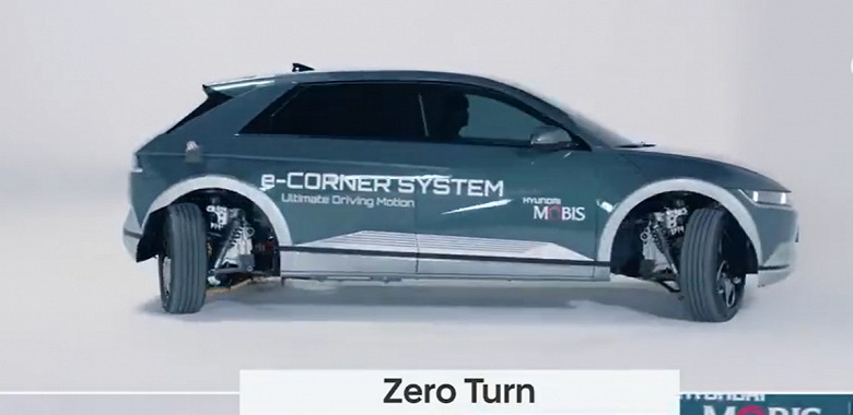 На выставке CES 2023 Hyundai Motor продемонстрировала систему e-Corner, которая позволяет автомобилю выполнять нестандартные задачи на дороге и парковке, например, ездить в стиле «краба» или разворачиваться относительно зафиксированной передней или задней оси.