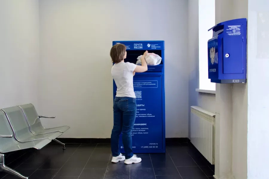 В десяти московских отделениях Почты России теперь установлены специальные контейнеры, где посетители могут оставить ненужные одежду, обувь, постельное белье, полотенца, сумки и ремни, а также мягкие игрушки. Эта инициатива принадлежит фонду Второе дыхание — он заключил партнерство с Почтой.