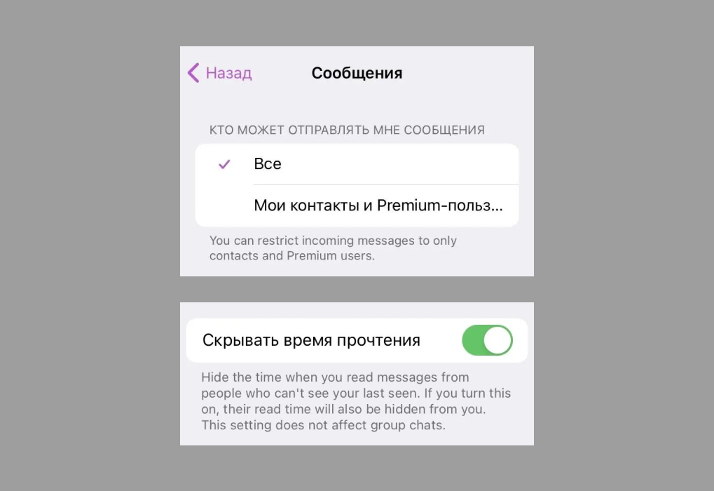 Кроме того, подписчики Telegram могут скрыть свой онлайн и в то же время видеть его у других. Для подключения функции необходимо выбрать пункт «Последняя активность». А тем, у кого не оформлена подписка, стал доступен просмотр времени последнего прочтения личных сообщений – достаточно нажать на облако текста.