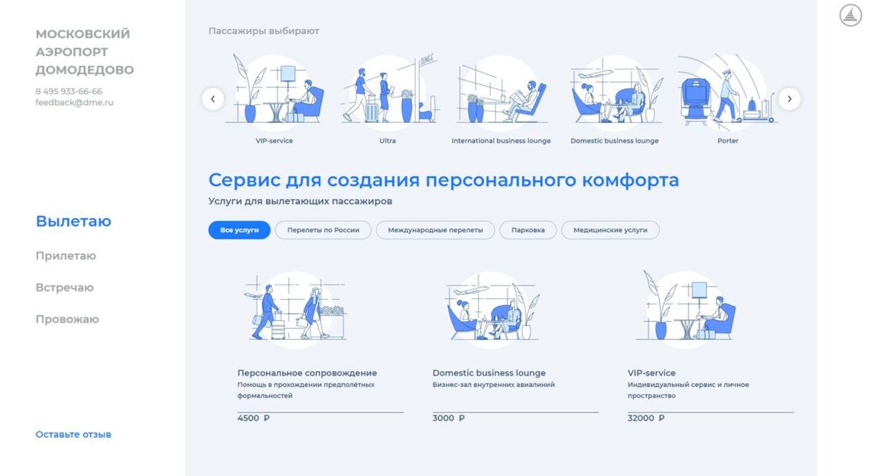 Выбрать услугу можно на сайте DME Store в одном из четырёх разделов: «Вылетаю», «Прилетаю», «Встречаю» и «Провожаю». В настоящий момент доступно более десяти различных опций. Их стоимость варьируется от 100 до 15 тысяч рублей.