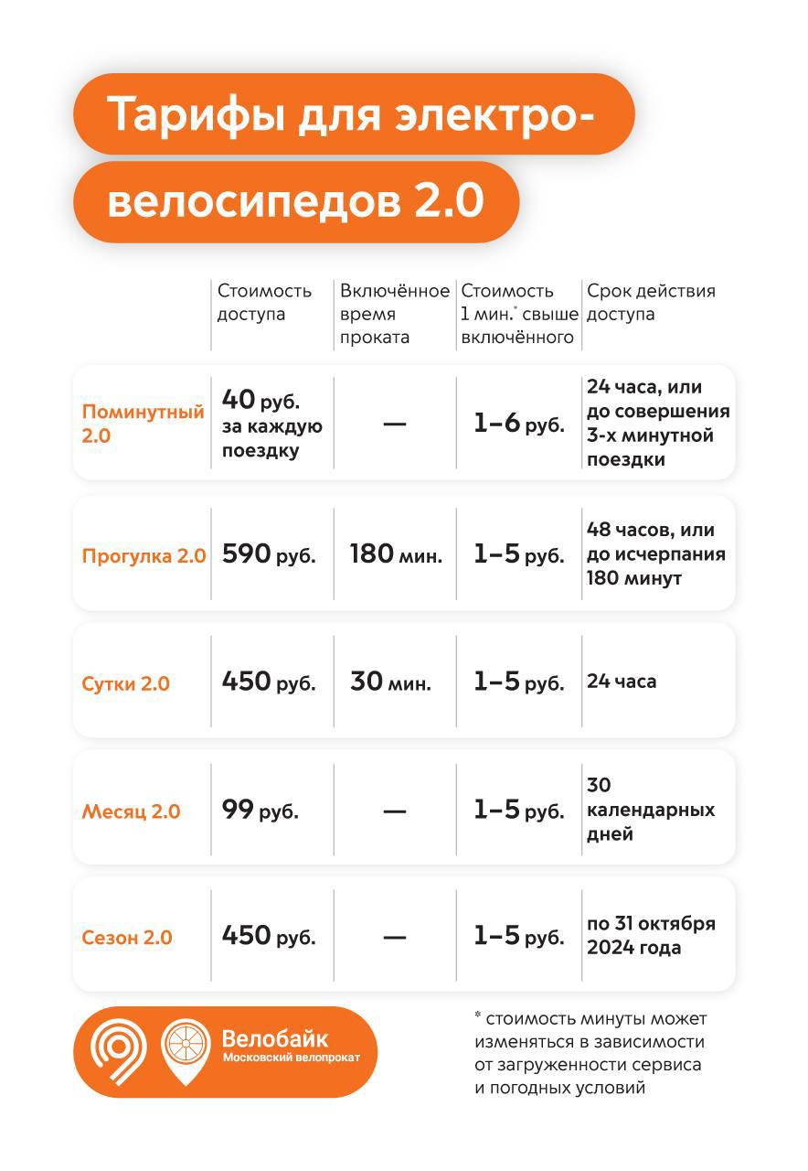 И опубликовал тарифы для электровелосипедов 2.0 на этот год