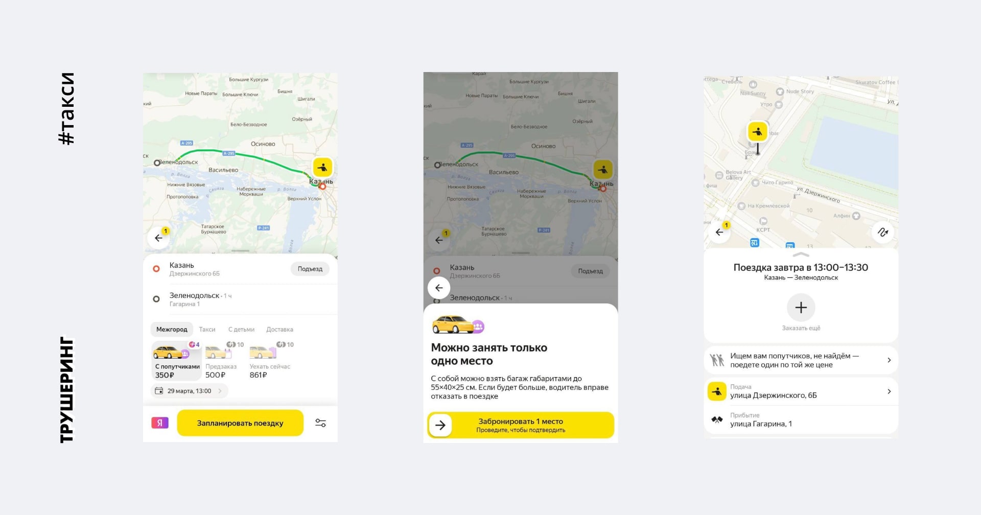 На заказ назначаются таксисты с высоким рейтингом, готовые выполнять длинные поездки между соседними городами. Водитель сразу увидит, что место назначения – другой город, стоимость поездки и наличие попутчиков. Так он сможет сразу решить, готов ли он взять такой заказ.