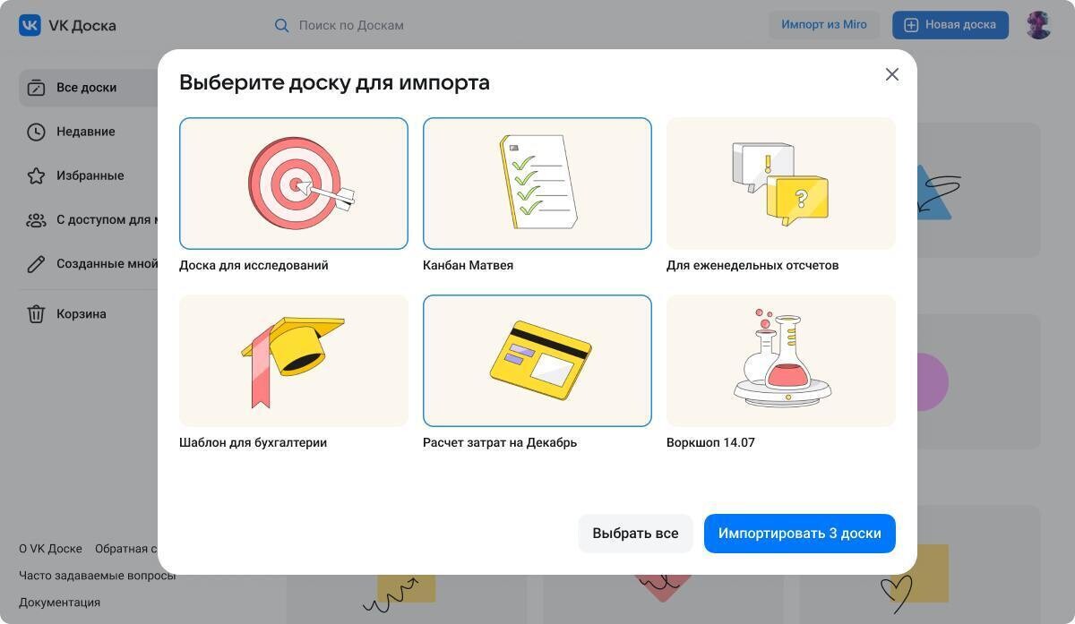 В сервис VK Доска добавили функцию переноса данных из Miro