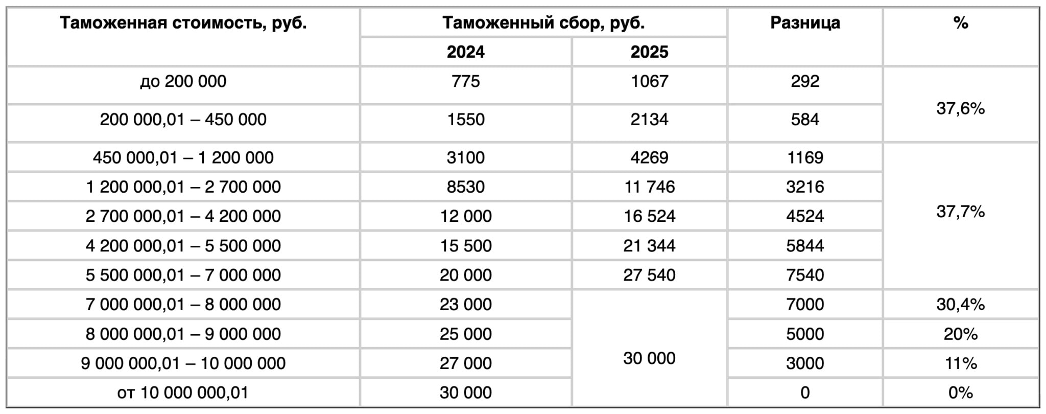 Также отмечается, что тавки стаможенных сборов не индексировались с 2019 года. Новые тарифы учитывают накопленную за пять лет инфляцию и, по сообщению Правительства РФ, «направлены на обеспечение эффективной работы таможенных органов в актуальных условиях».