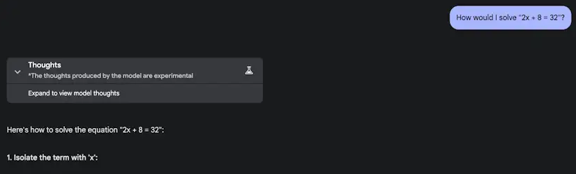 Экспериментальная модель «мыслит вслух»: 2.0 Flash Thinking строит логические рассуждения в режиме реального времени. Это стало возможным благодаря повышению скорости обработки данных. Например, обновлённая модель решит задачу по физике, объясняя каждый свой шаг. По словам Google, такой подход поможет сделать результаты ответа более точными и надёжными.