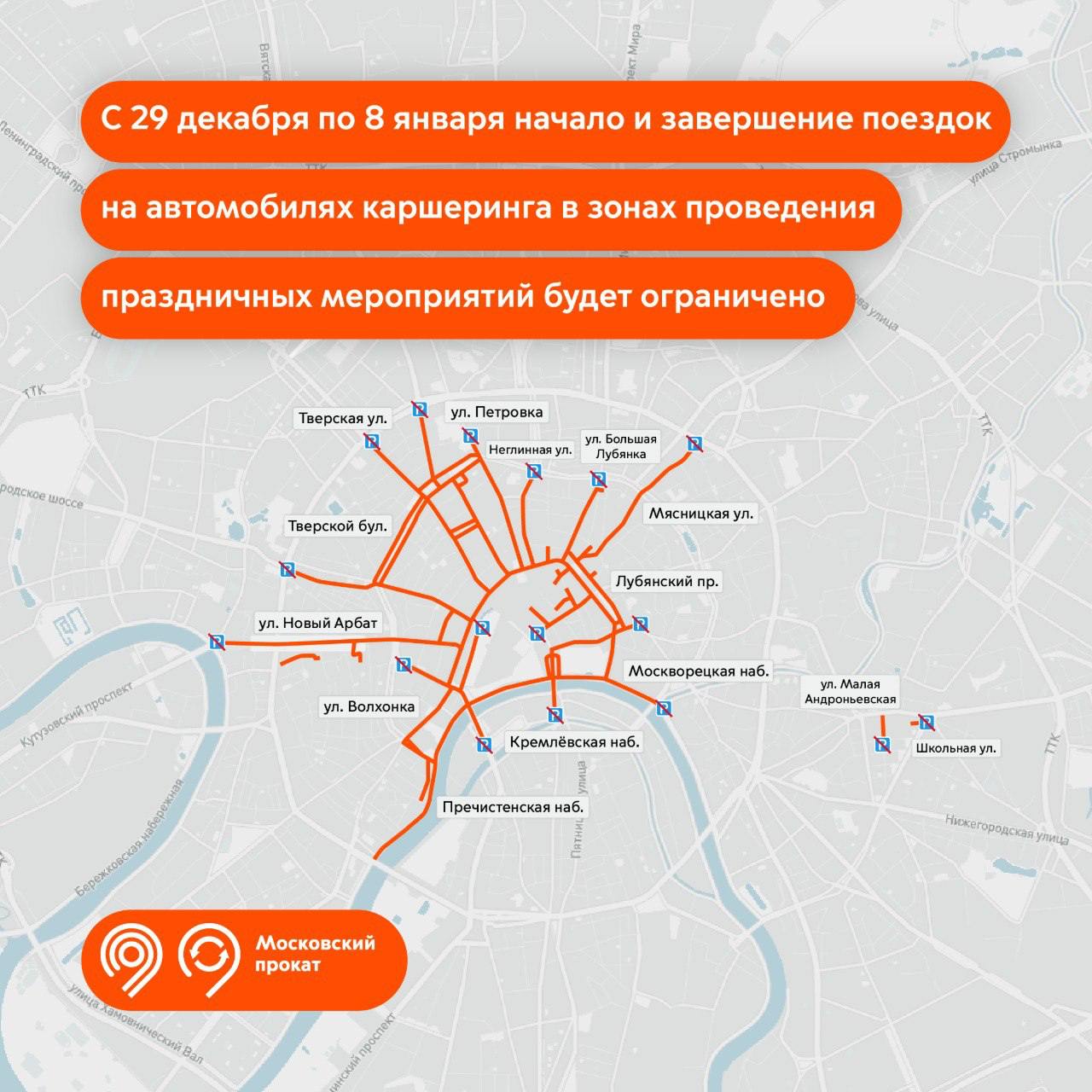 Но начало и завершение поездок на каршеринге в зонах праздничных мероприятий будет ограничено