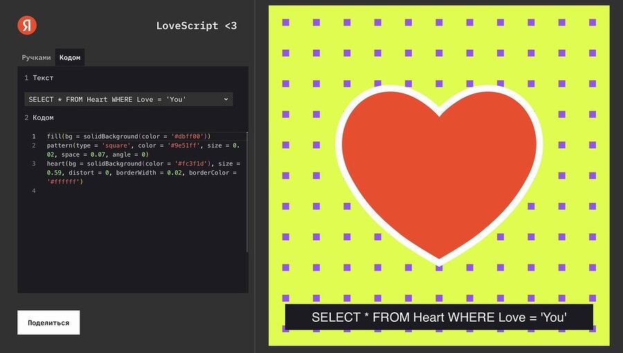 Яндекс запустил сервис для создания валентинок при помощи кода