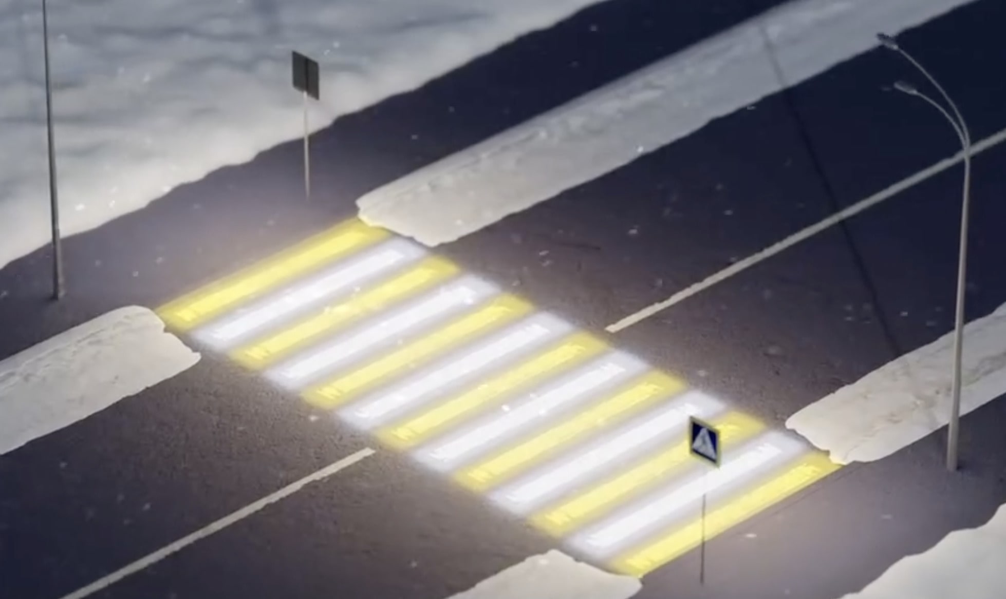 Кроме того, световая проекция дополнительно освещает переход, делая пешеходов заметными даже в тёмной одежде.