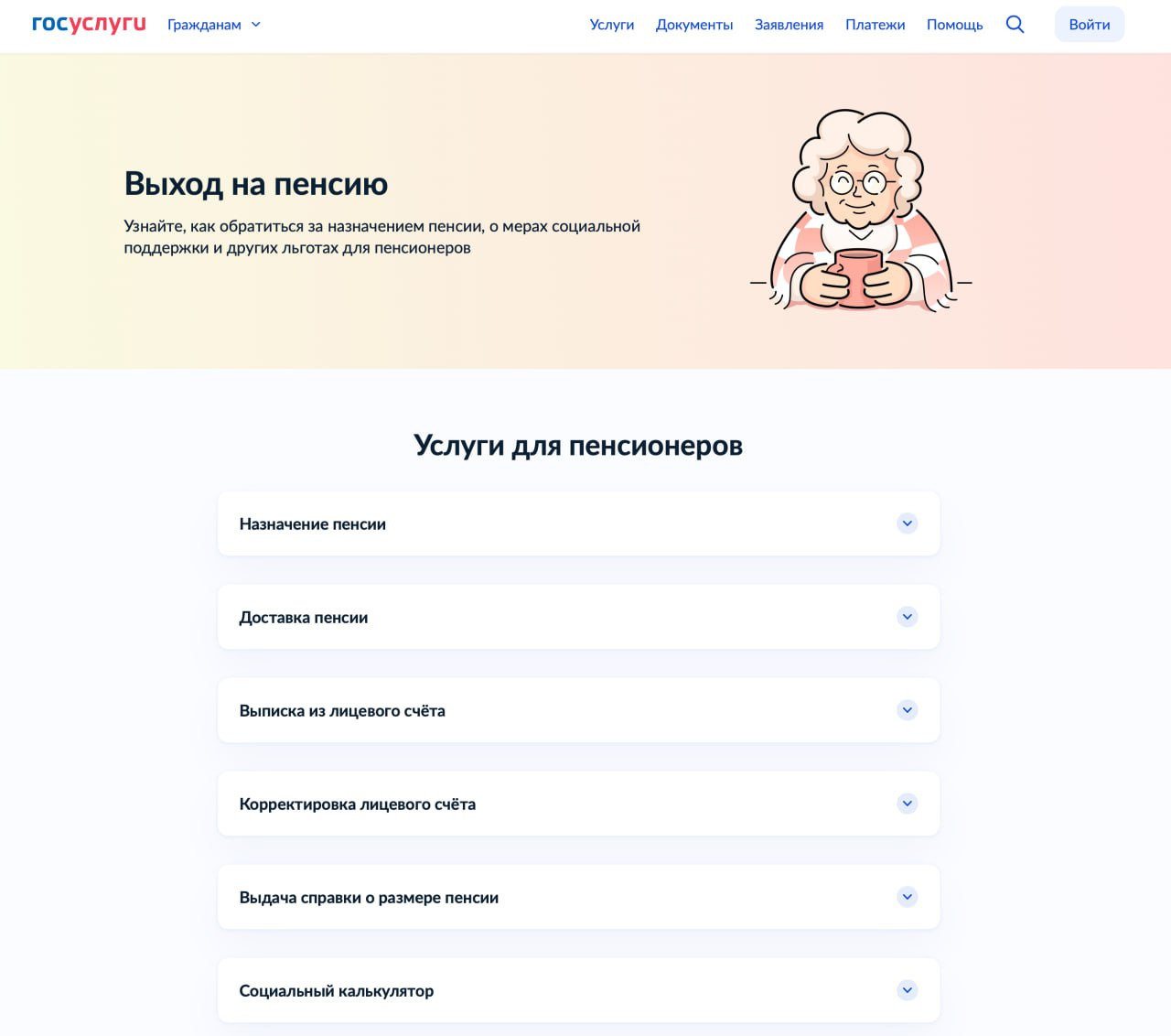 Он появился в каталоге «жизненных ситуаций». С помощью нового сервиса пенсионеры смогут оформить пенсию, получить справку о её размере или запросить всю необходимую информацию о мерах социальной поддержки.