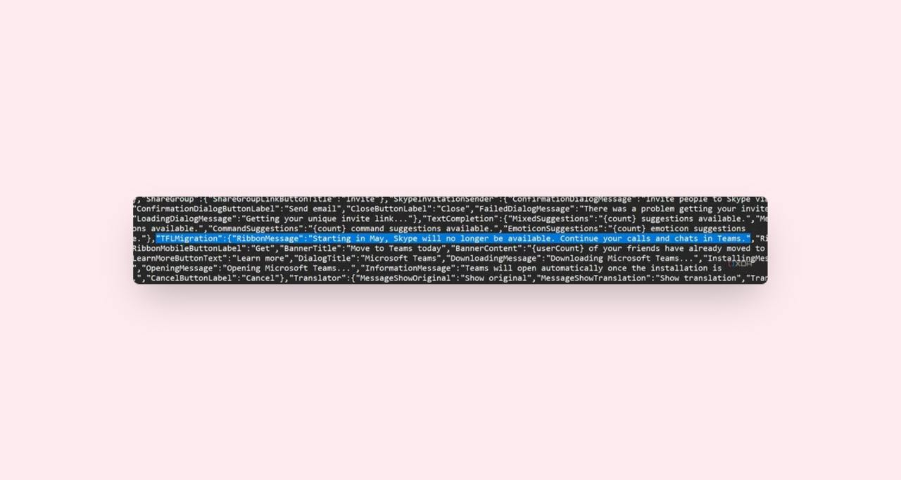 Специалисты XDA-Developers обнаружили в коде последней предварительной версии Skype для Windows скрытую строку: в ней говорится, что Skype перестанет работать с мая 2025 года. Пользователям предлагают перейти в корпоративный мессенджер Teams.
