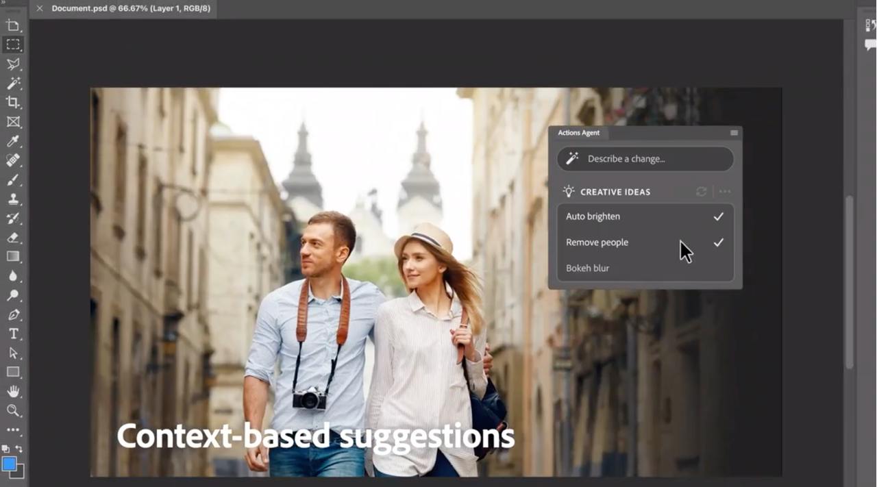 Adobe представила «креативного агента» для Photoshop. ИИ сможет проанализировать снимок и предложить правки. Например, ИИ может предложить стереть людей с фото или добавить эффект боке. Всё, что нужно сделать пользователю, это выбрать предложенные варианты, и они применятся автоматически. Также пользователи могут сами делать текстовые запросы к ИИ-агенту.
