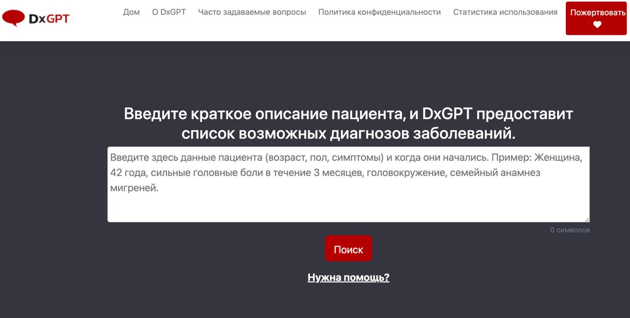 DxGPT анализирует симптомы и выдаёт возможные диагнозы