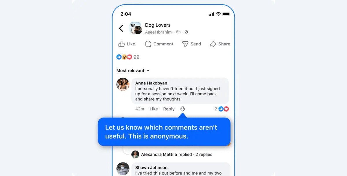 Ставить дизлайк можно на сообщения, которые не относятся к теме обсуждения. При этом автор комментария не узнает о такой «оценке». Ранее Facebook* уже тестировал опцию, однако релиз был отложен. По словам разработчиков, мера поможет убрать «бесполезные» ответы — социальная сеть будет автоматически предлагать подсказку для отметки комментариев, которые «не несут пользы».