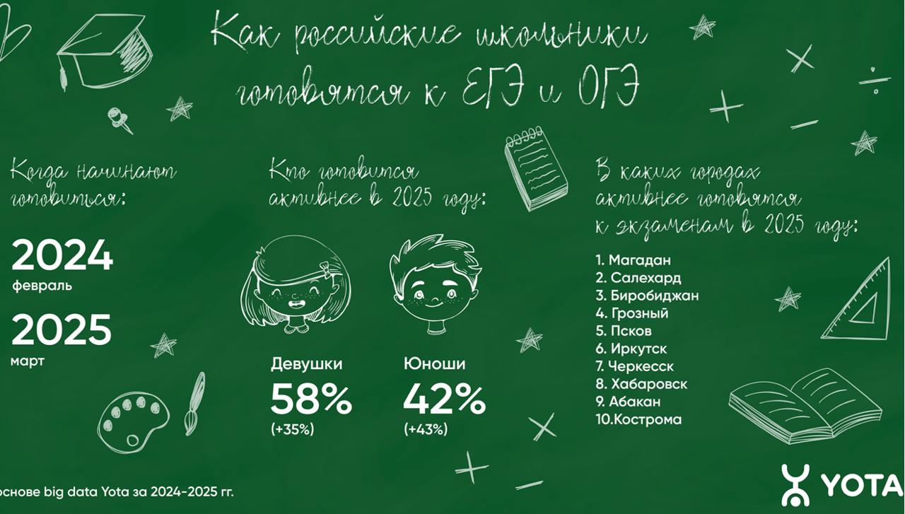 Активная подготовка к ЕГЭ и ОГЭ у школьников в 2025 году сдвинулась на март. При этом все больше учеников готовятся онлайн — число пользователей сервисов и приложений для подготовки к обязательным экзаменам с января по первые две недели мая выросло на 39% относительно прошлого года, выяснили аналитики Yota на основе обезличенных данных абонентов.