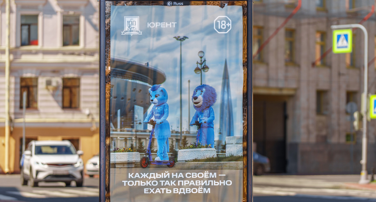 В июле на улицах города появились плакаты с участием маскотов «Зенита» — синегривого Льва и Львицы. В игровой форме они напомнят петербуржцам о правилах дорожного движения при использовании самокатов.