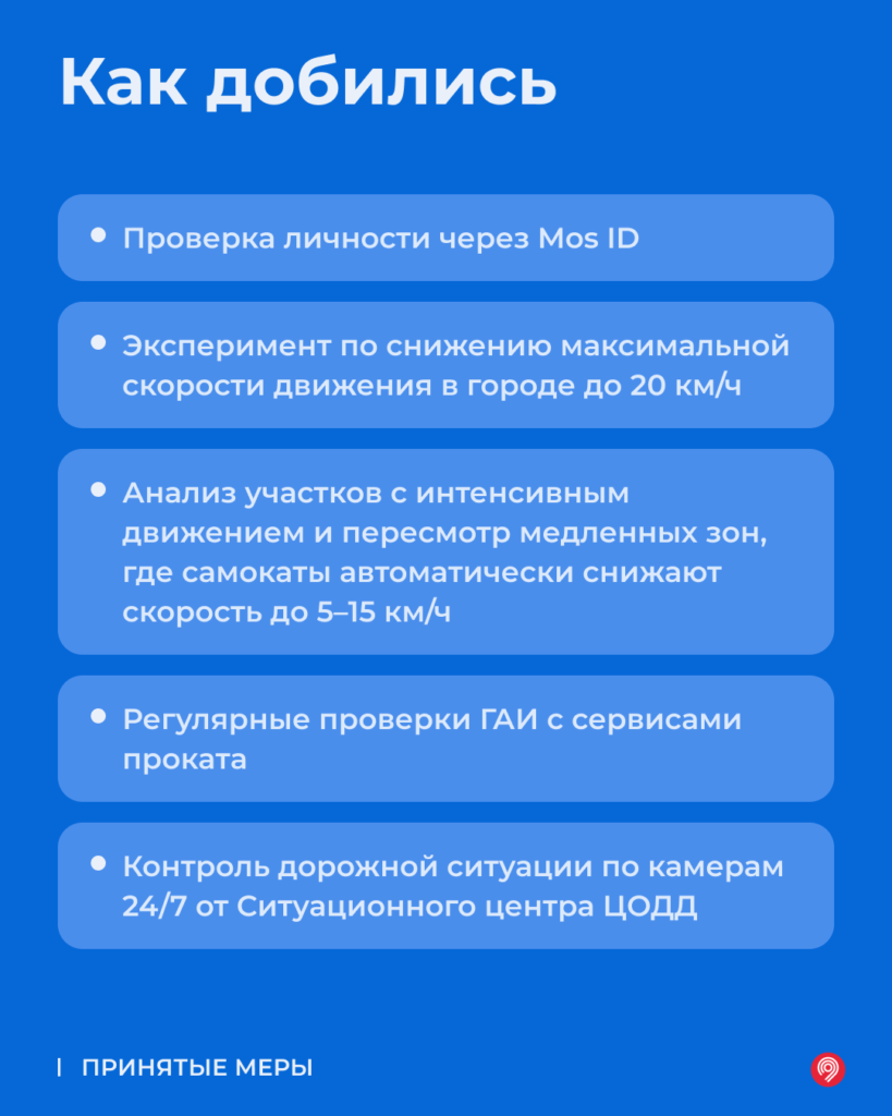 Ездить на СИМ стало безопасно благодаря введению обязательной верификации пользователей, снижению максимальной скорости движения до 20 км/ч, появлению новых медленных зон, а также работе сотрудников Госавтоинспекции и Ситуационного центра ЦОДД.