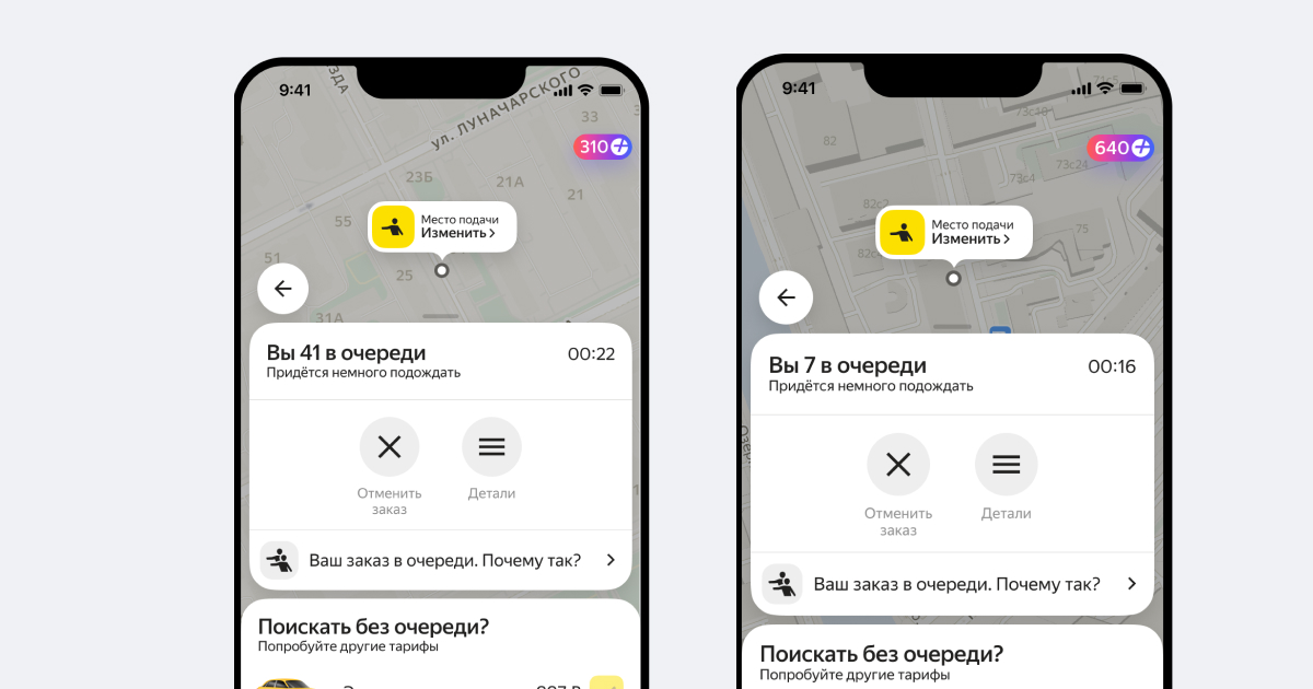 Пользователи могут встать в виртуальную очередь в тарифе Эконом в период, когда заказов намного больше, чем водителей на линии. С её помощью клиенты могут решить, на каком виде транспорта им будет быстрее и выгоднее добраться до нужной точки. В частности, им предоставят возможность решить оставаться в очереди и ждать машину, заказать такси по другому тарифу, сесть на общественный транспорт или дождаться окончания ливня.