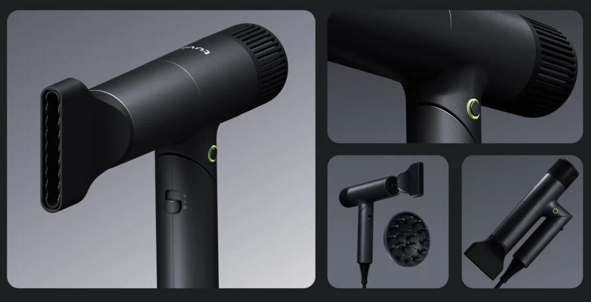 Мини-фен Tuvio весит 567 грамм, а его длина составляет 27 сантиметров. По своим габаритам устройство напоминает длинный пульт от телевизора, поэтому его удобно брать с собой в поездки. Модель обладает бесщёточным BLDC-мотором мощностью 1500 Вт, который развивает скорость до 110 тысяч оборотов в минуту. Благодаря этому он быстро сушит волосы за три–пять минут, работает на 30–50% тише обычных фенов и экономно расходует электроэнергию.