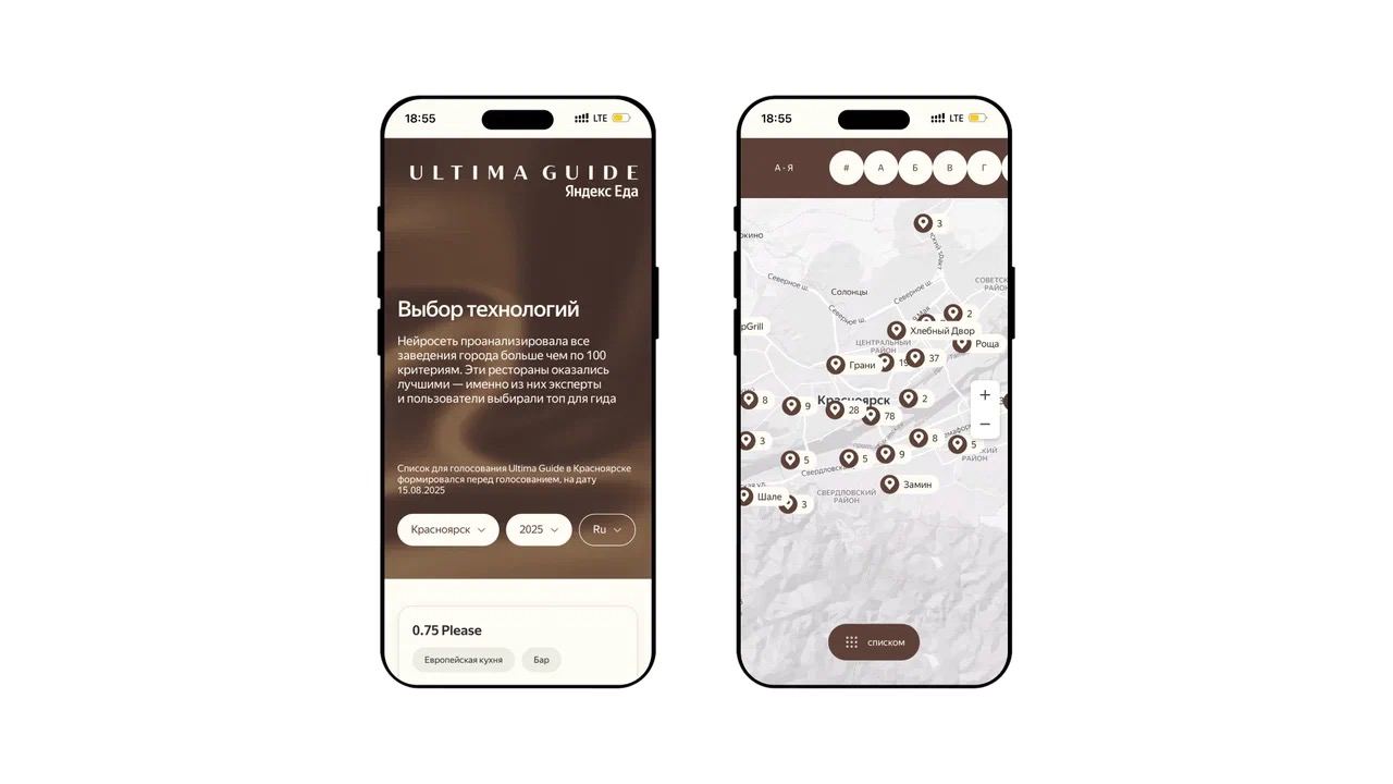 Яндекс Еда впервые опубликовала Ultima Guide по заведениям Красноярска в сентябре 2024 года. Сейчас ресторанный гид сервиса есть уже в шести крупных городах России: Москве, Санкт-Петербурге, Сочи, Красноярске, Нижнем Новгороде и Казани, а также в столице Узбекистана – Ташкенте. Путеводитель доступен на трех языках – русском, английском и китайском.
