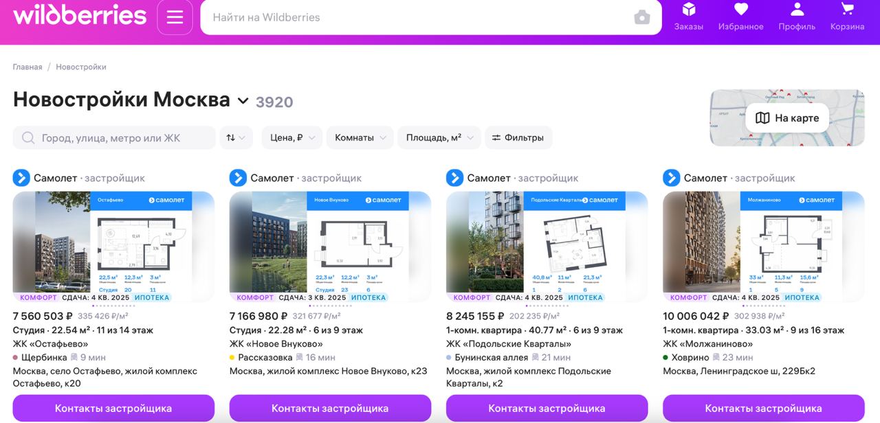 Пользователи Wildberries теперь могут приобрести квартиры в новостройках