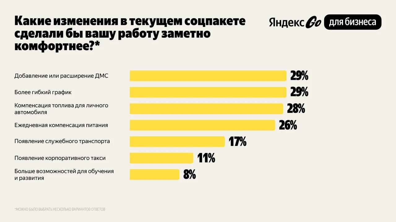 Яндекс Go для бизнеса: 95% сотрудников российских компаний ждут от работодателя соцпакет