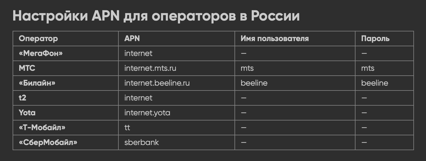 Для работы режима модема и VoLTE на новых iPhone нужно вручную прописать APN оператора. Стоит отметить, что вернуть VoWi-Fi не получится.