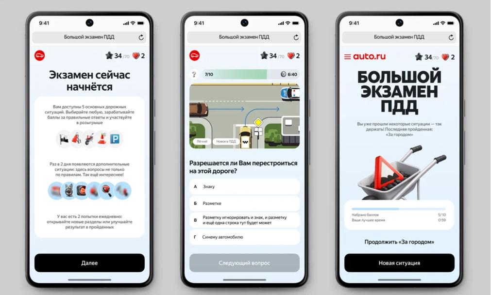«Мы развиваем Большой экзамен ПДД Авто.ру, чтобы движение на дорогах становилось более безопасным и комфортным для всех. Игровой формат помогает выявить пробелы в знаниях правил и сложных дорожных ситуаций, а также разобраться в вопросах, связанных с владением и эксплуатацией машины, которые не встречаются в автошколе».
