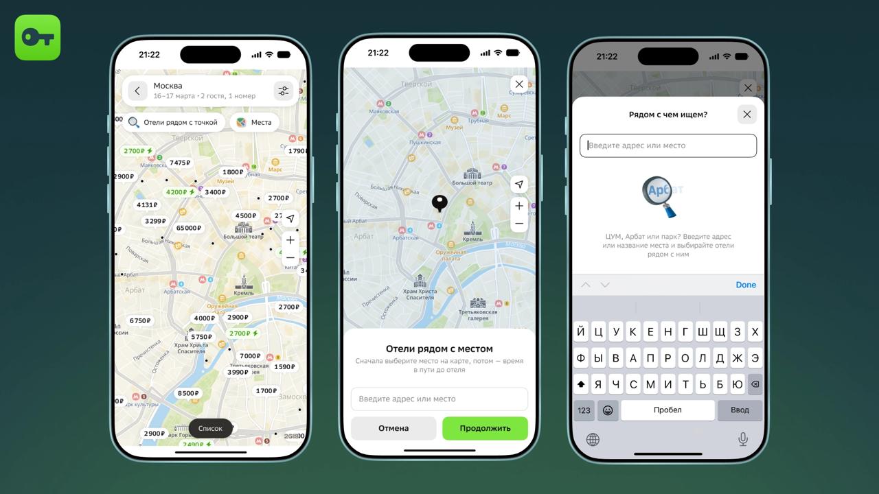 Новый сценарий «Здесь и сейчас» позволяет найти отели, ориентируясь на конкретную локацию. Сервис запросит доступ к геоданным — останется указать нужное время в пути. Отелло покажет отели, которые попадают в зону и доступны к заеду прямо сейчас.
