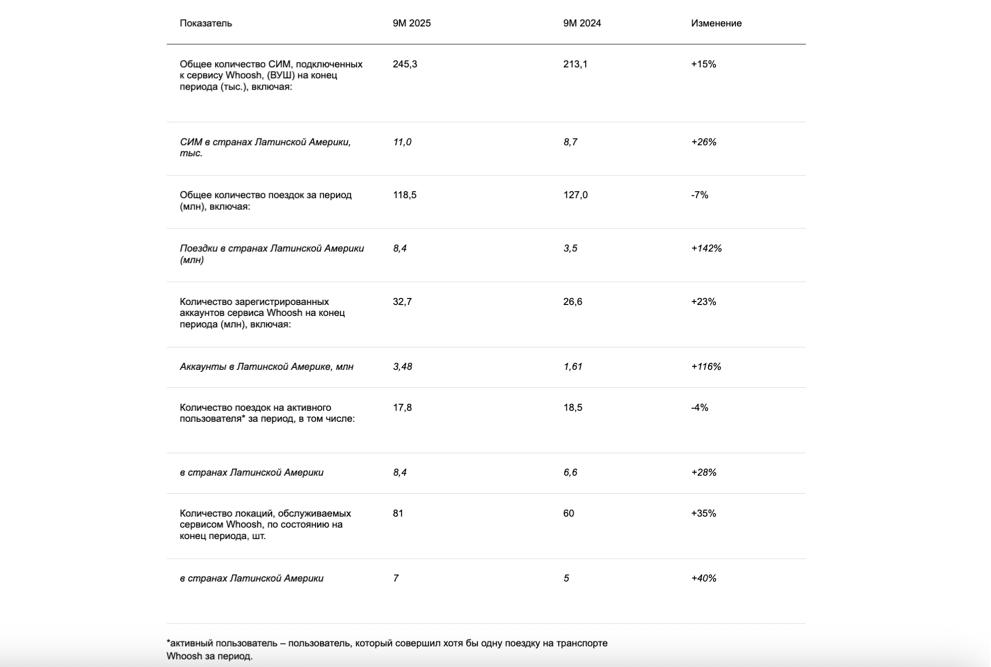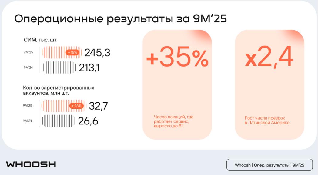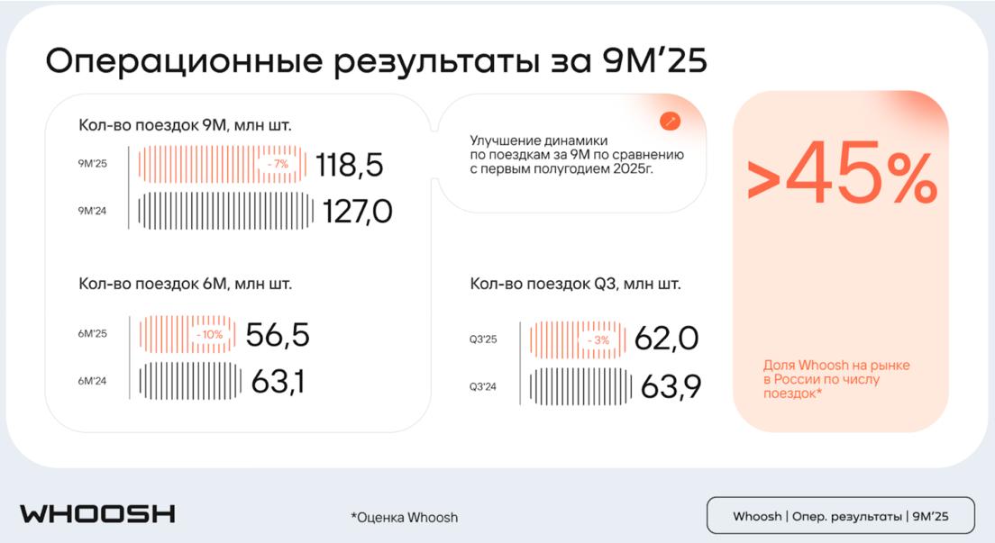 Кикшеринг Whoosh опубликовал операционные результаты за девять месяцев 2025 года