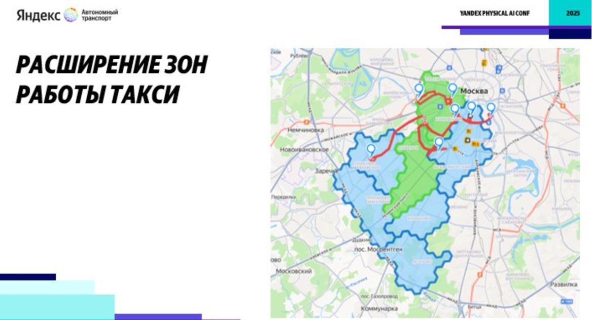 Новости 23.10.25 14:03 367 Яндекс представил новый дизайн автономного таксиПо словам компании, дизайн согласован с Дептрансом МосквыВ ходе конференции Yandex Physical AI Conf Яндекс представил новый дизайн роботакси. По словам компании, дизайн был согласован с Дептрансом Москвы. Кроме того, компания показала карту зон, где сервис начнёт работать в ближайшее время. Автономный автомобиль впервые в России проехал 400 км без вмешательства человека Поездка прошла по маршруту Москва — Тула — Москва