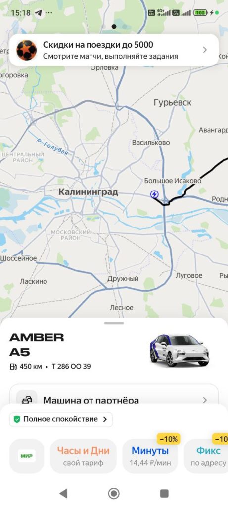 В каршеринге в Калининграде теперь можно арендовать электрическую Amber A5. Автомобиль появился на карте сервисов и уже доступен для аренды.
