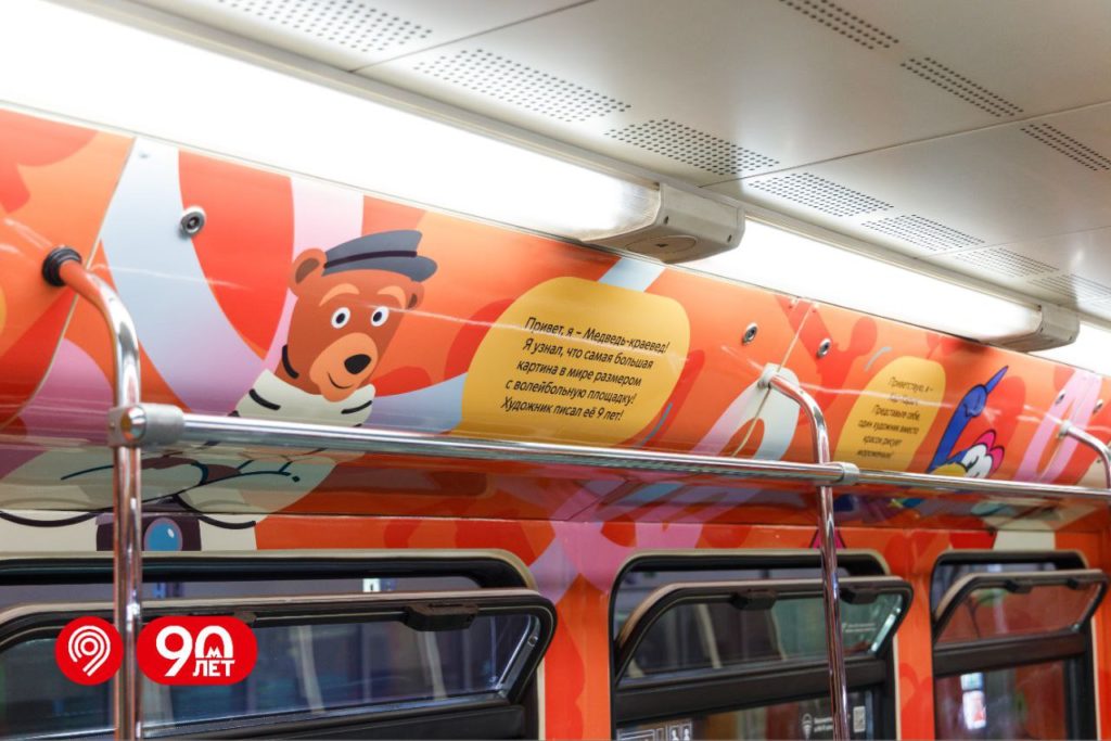 «Московский транспорт сотрудничает с разными культурными проектами по поручению Мэра Москвы Сергея Собянина. Ранее мы выпускали карты «Тройка» с детскими персонажами, создавали тематические объявления и ролики более чем для 34 тысяч медиаэкранов во всём городском транспорте. С 2023 года развиваем детское направление — создали персонажей Московского транспорта, которые знакомят юных пассажиров с транспортом и его правилами. В новом брендированном поезде собраны герои из 10 популярных российских анимационных проектов».