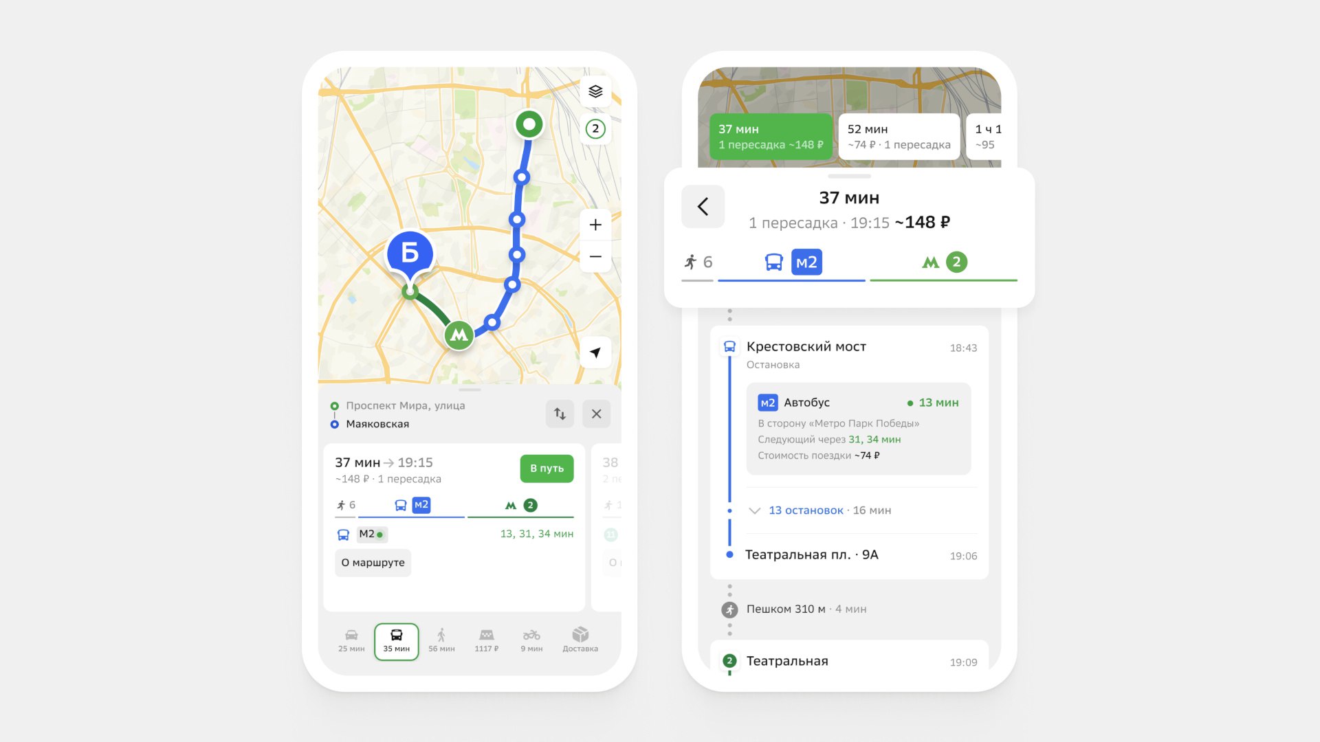 В сервис добавили цены на автобусы, троллейбусы, трамваи, маршрутки, метро, для Москвы это также цены для МЦД и МЦК. При построении маршрута в приложении будут предложены разные варианты и общая стоимость каждого.