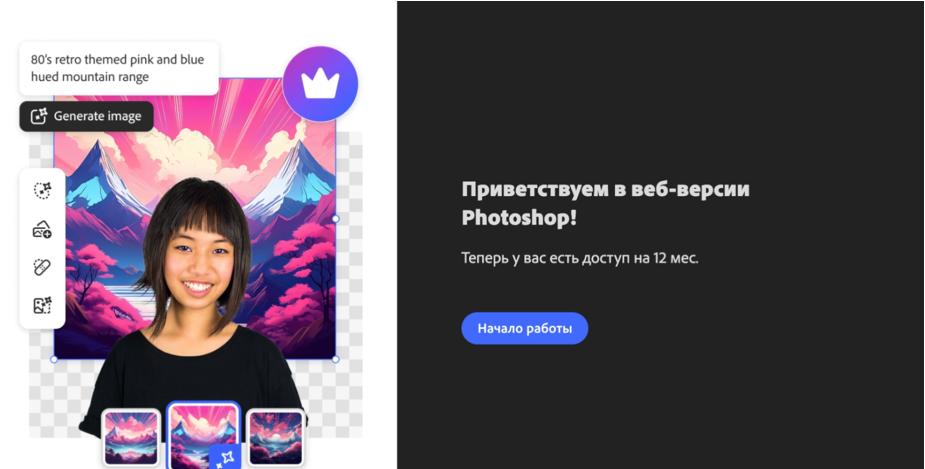 Adobe предоставляет бесплатный доступ к Photoshop Web на год