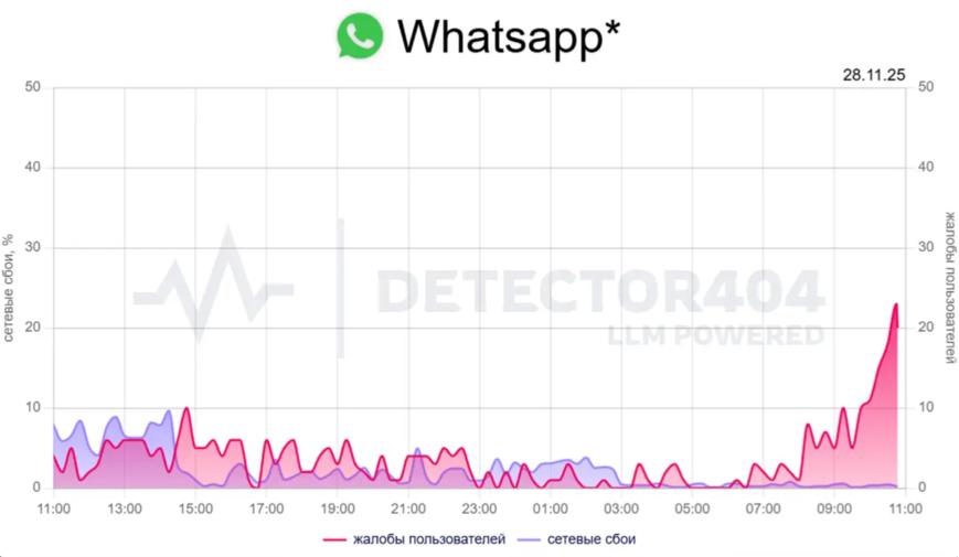 Всплеск жалоб на недоступность WhatsApp* зафиксировали профильные ресурсы мониторинга «Сбой.рф» и Detector404. Проблемы затронули крупнейшие города страны.