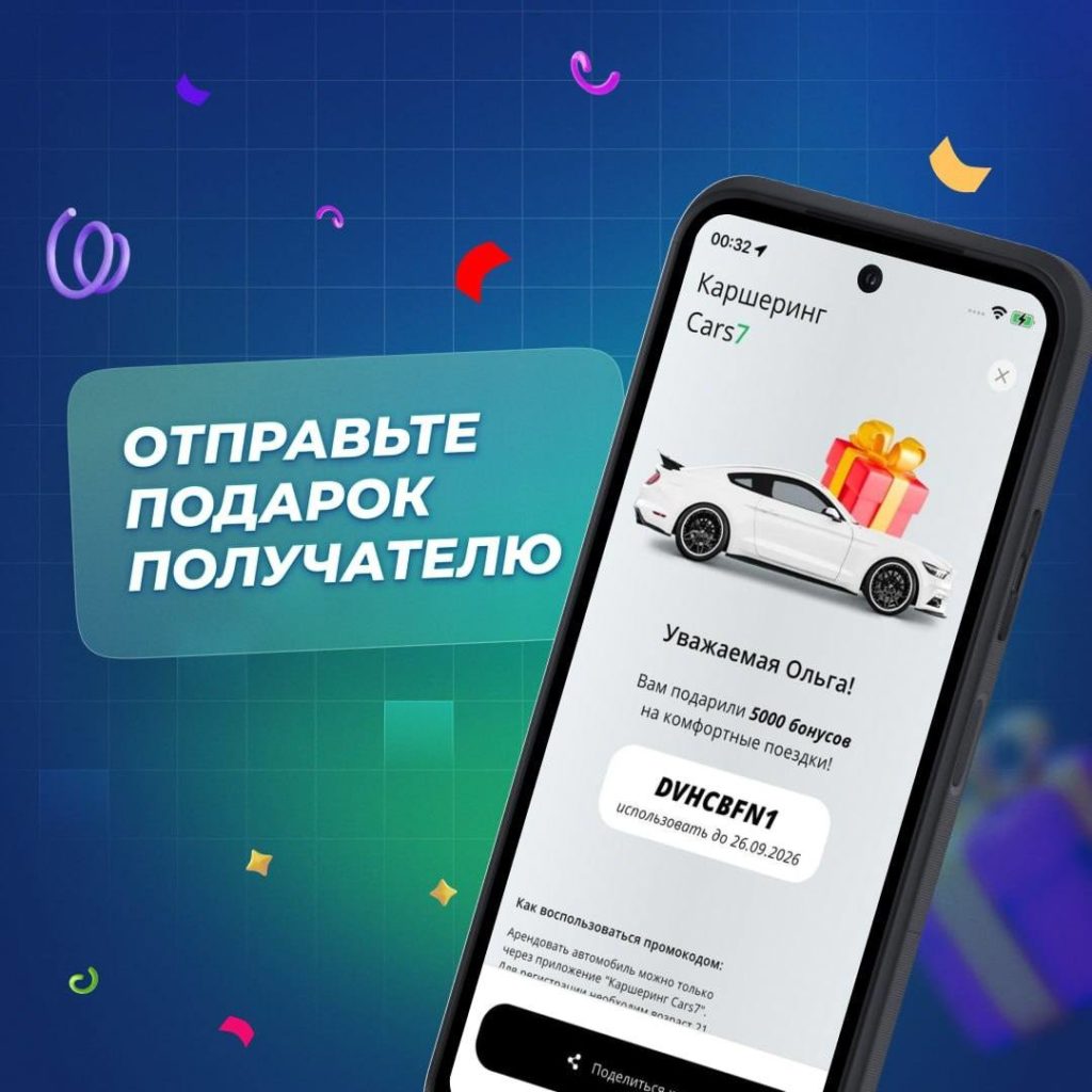 Теперь в приложении каршеринга Cars7 можно оформить подарочный сертификат.