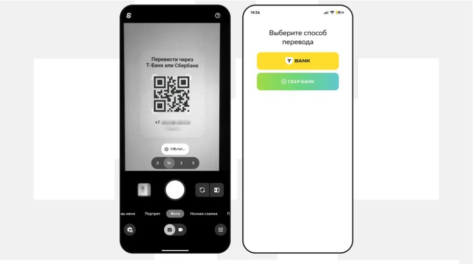 Т-Банк и Сбер планруют запуск межбанковских переводов для физических лиц по QR-коду. Получатель может сгенерировать в мобильном банке QR-код и показать его отправителю, а тот отсканирует код и переведёт деньги. Кроме того, будет возможность поделиться ссылкой для перевода средств.