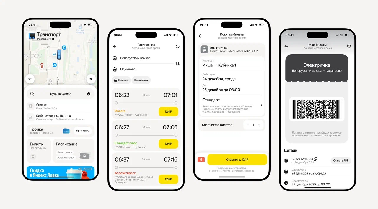 В приложении Яндекс Go теперь можно приобрести билеты на электрички. В сервисе «Транспорт» также можно построить маршрут и узнать актуальное расписание поездов. Новая функция доступна в Москве, а также в Рязанской и Калужской областях.