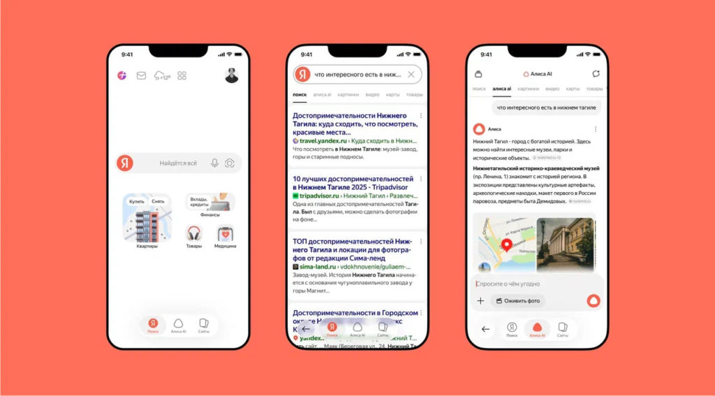 Например, на запрос «Что интересного есть в Нижнем Тагиле?» в Поиске после клика на кнопку «Алиса AI» пользователь получает подробный ответ с несколькими вариантами, расписанием работы, фотографиями, карточками организаций и ссылками на источники. Если необходима дополнительная информация, можно продолжить общение в чате или перейти к подробному описанию на нужном ресурсе. В дополнение к текстовым запросам Алиса AI поддерживает загрузку документов и изображений прямо в диалоговом режиме.