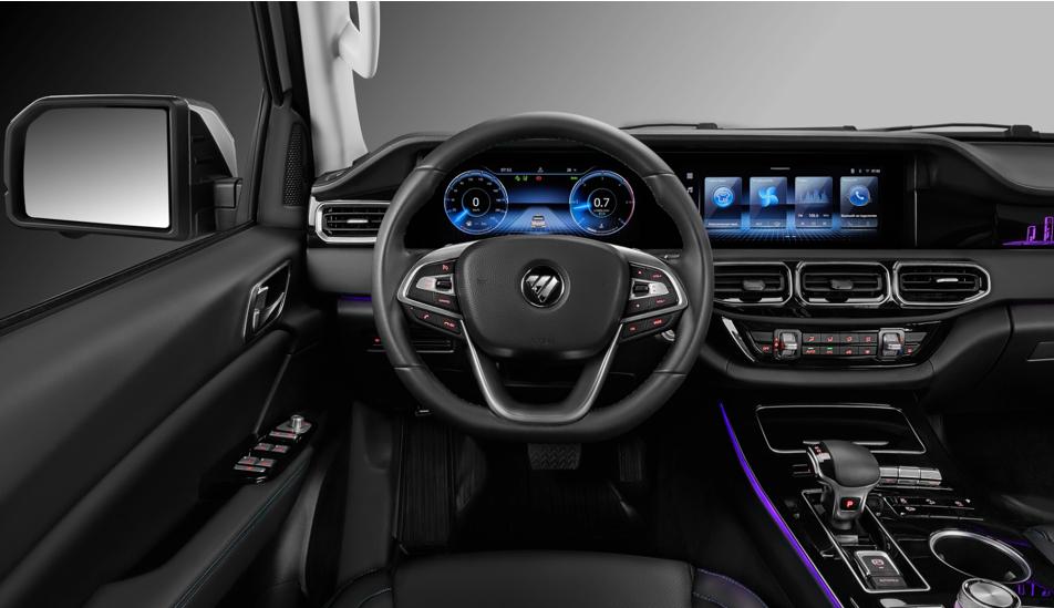 Внутри пикапа есть два 12,3-дюймовых экрана — приборная панель и мультимедиа, — которые объединяются в единый блок. Управлять мультимедиа можно как через сенсорный экран, так и через джойстик на центральной панели.