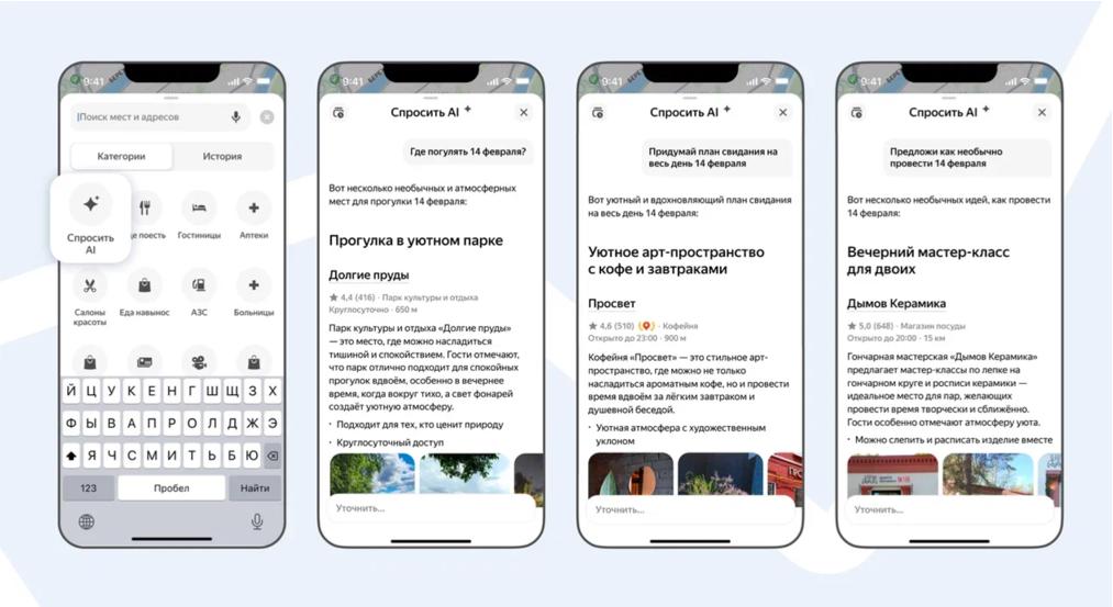 ИИ-чат в Яндекс Картах подберёт места для интересных свиданий