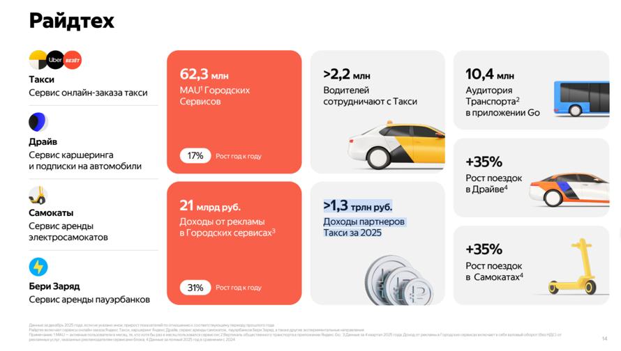 Исходя из результатов, более 2,2 млн водителей сотрудничают с Яндекс Такси. А доходы партнёров сервиса за 2025 год составили более 1,3 трлн рублей.